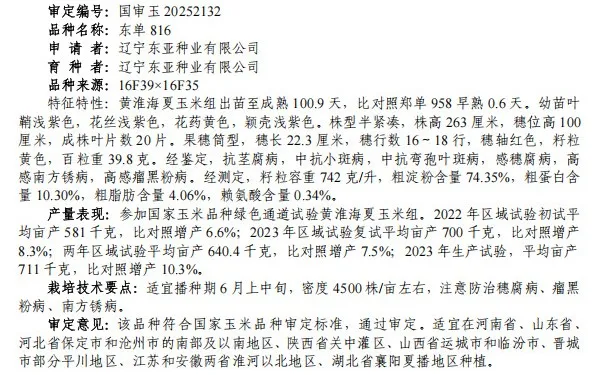 近日,農(nóng)業(yè)農(nóng)村部發(fā)布公告,共審定通過水稻品種425個、玉米品種764個、棉花品種31個、大豆品種42個、小麥品種5個。東亞種業(yè)3個玉米品種通過國家審定。